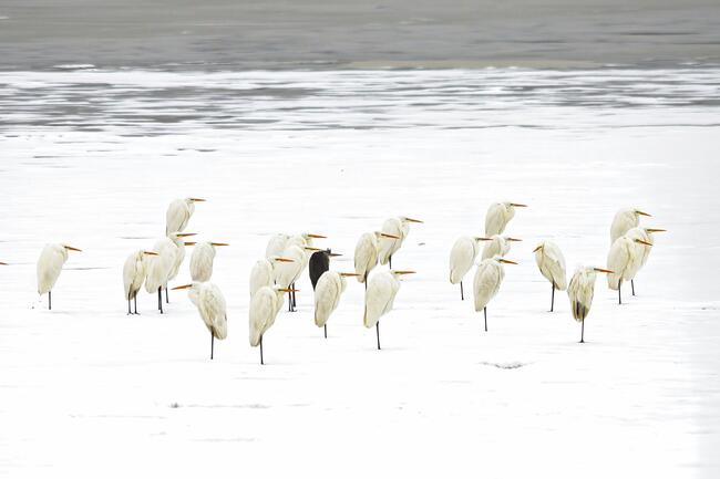 Téli túlélő üzemben állnak a madarak a jégen, ezt sikerült megfogni.