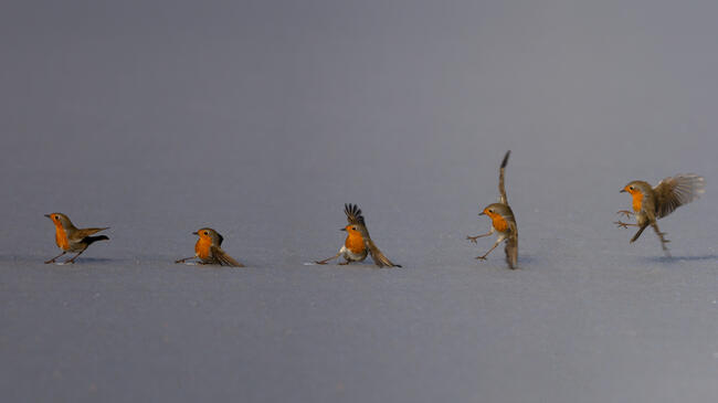 Több, egyidejű felvétel összeillesztésével létrehozott mozdulatsor, saját lesből, a Mórichelyi-halastavak jegén.