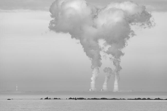In the distance, steam is coming from the pipes of the Leningrad nuclear power plant. Small, almost imperceptible cormorants sit on a narrow stone promontory, which have less and less space.