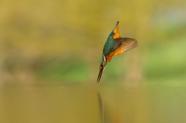 A jégmadár becsapódása előtti pillanata látható a képen.