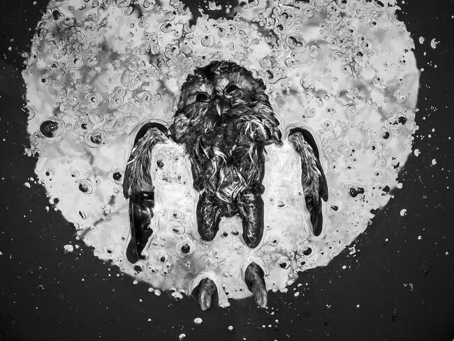 A fotó egy elpusztult Macskabaglyot ábrázol, aki az erdő szélén egy lefedetlen kútban lelte halálát. Valószínűleg vadászat közben fulladt a vízbe.