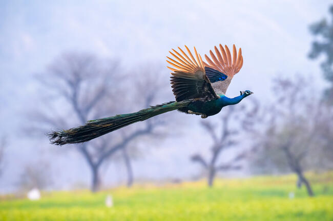 Indian Peafowl, The national bird of India is not only a beautiful bird but also has a graceful flight despite its huge size.