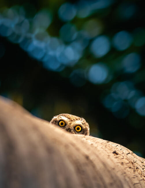 After years of observing this owl’s roost in an ancient Mughal garden, I finally captured one perched at the edge of its hole, staring directly at me. Its eyes are remarkable—the background appears dreamy. Home to 2 owls, this curious one often keeps watch. I approached carefully from behind a tree to create background separation, took a few frames, and left quietly—grateful for this brief, intimate encounter.