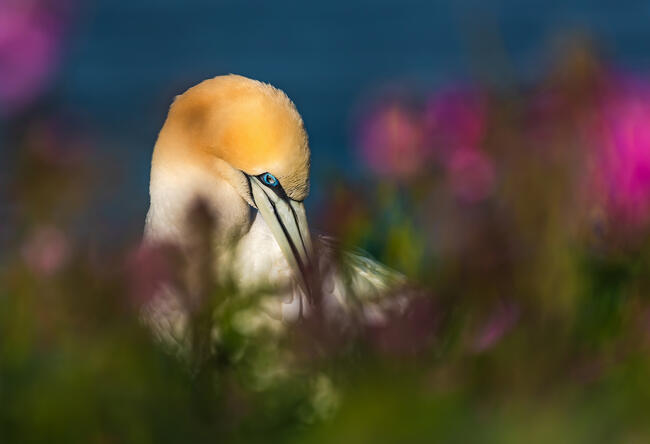 Szintén a Bempton Cliffs szikláinál készült ez a fotóm. Egy szulát pillantottam meg amit a virágok között állt vagy ült, nem lehetett eldönteni. De a pózok amiket felvett az nagyon megragadó volt. A piros virágok meg az előtérben az már szinte hívott, gyere fotózz le.