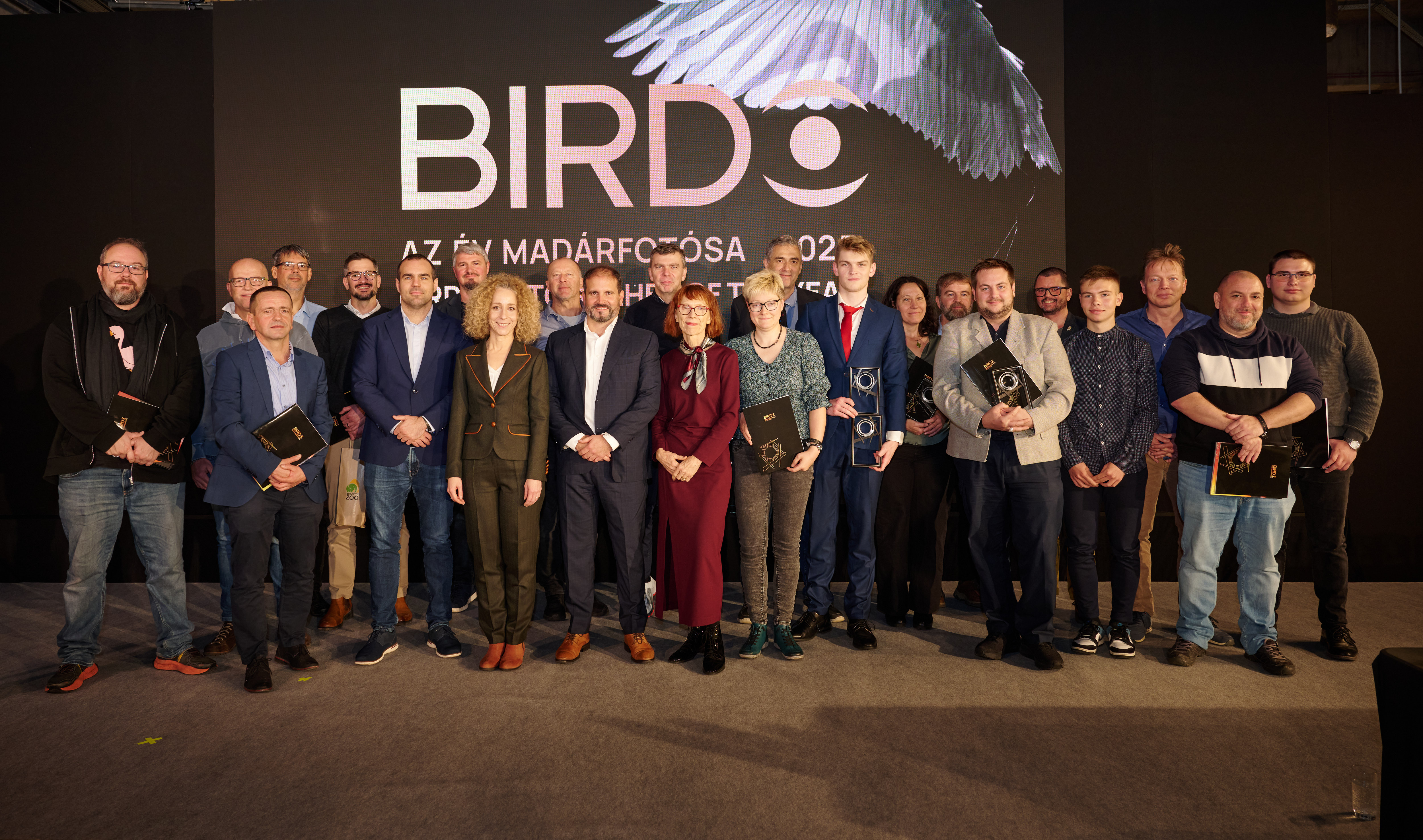A Birdo Az év madárfotósa és a Birdo Az év ifjú madárfotósa fődíjakat azok nyerték, akiknek a benevezett fotói az összesítésben a legmagasabb pontszámot érték el. A Birdo Az év madárfotósa 2025 cím birtokosa az indiai Hira Punjabi természetfotós lett. Punjabi Mumbaiban él, több mint harminc éve fotózik. Művei ritka, bensőséges pillanatokat őriznek meg, minden képével arra ösztönöz, hogy óvjuk a környezetünket és figyeljünk rá jobban. A Birdo Az év ifjú madárfotósa 2025 címet Maksymilian Paczkowski lengyel fotós érdemelte ki. A 18 éves fotós egy emlékezetes képét már tavaly is díjazták a Birdo versenyében. Elsősorban állatokat, főleg madarakat szokott fotózni, leginkább a szépségük miatt. Képein szeret a fény művészi erejével játszani. A Birdo Az év madárfotója az a kategórianyertes kép lehet, amelyik figyelemfelhívó erejével leginkább hozzájárul a madárvédelem ügyéhez, a madarak népszerűsítéséhez. Ezt a díjat 2025-ben Sandra Kenyon Tökéletes pillanat című alkotása, a Madárportré kategória első helyezettje nyerte el. Az Egyesült Királyságban élő Sandra nem először indult a Birdo pályázaton; képeivel a világ számos tájára elkalauzolja nézőit.