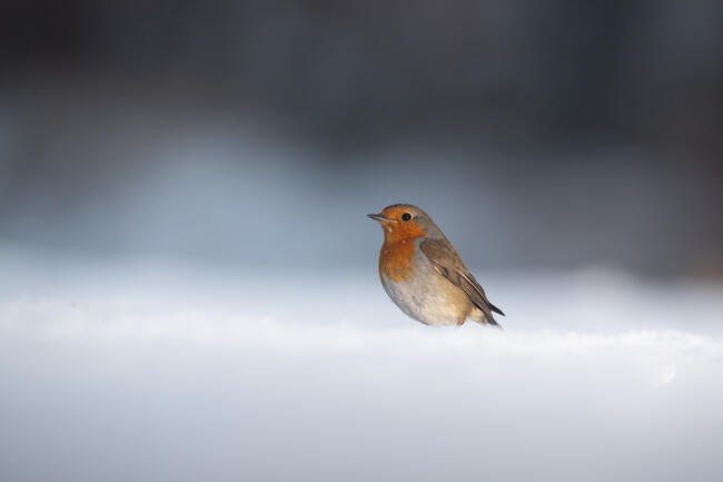 A téli leshelyemnél reggelre leesett a friss hó. Ez a kis vörösbegy pont előttem szállt le a friss hóba. Ilyenkor a hóról visszaverődő derítő fény, csodálatosan világítja meg a madarakat.