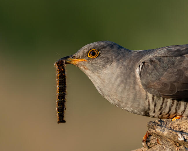 A les melletti közeli beszállóágon fényképeztem kakukkot, mikor váratlanul leugrott egy bokorra és egy hernyóval tért vissza.