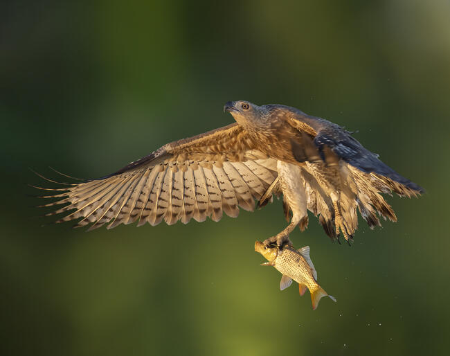 A Grey-headed fish eagle catch up a fish and flying away.