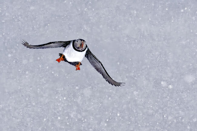 Puffin under the snow