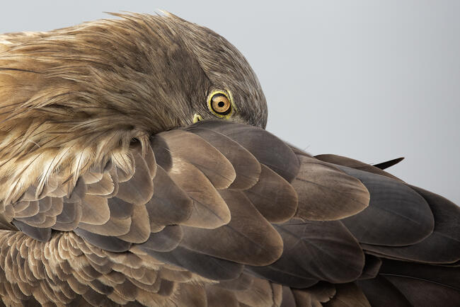 Felnőtt rétisas tollászkodása extrém közelségből.