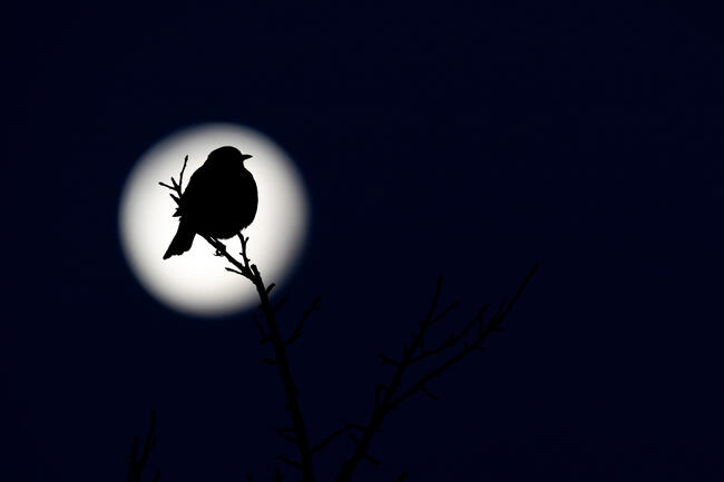 Egy hideg Januári hajnalon készült a fotó. Épp telihold volt, és én észrevettem ezt a rigót ,amint egy fa ágain őrizte álmát. Próbáltam megtalálni a megfelelő kompozíciót , hogy a hold legyen a háttér, és a rigó sziluettje látszódjon.