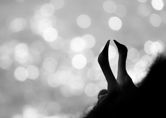 A kép két szula sziluettjét mutatja, amint szerelmi táncukat járják a sziklákon, miközben a víz felszínén tükröződő fények lágy bokeh hatást hoznak létre. Ez a kép kora reggel készült, és a fények játékának köszönhetően egy romantikus, varázslatos hangulatot kölcsönöz a jelenetnek, mintha szerelmi szikrák repkednének körülöttük.