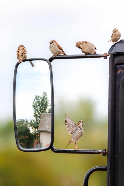 Egy traktor tükrét előszeretettel használták a verebek pihenő helyként.
