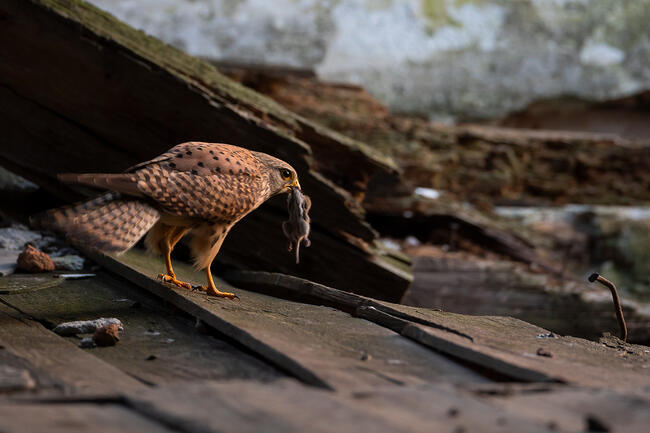 A vércsék egy romos épület falába vertek tanyát. Az épület szintjei között élik mindennapjaikat. Sok érdekes megfigyelést tettem fotózásuk során, ezen a különleges élőhelyen.