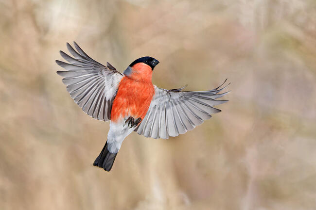 The March day was filled with sunlight and warmth. Bullfinches were feeding on a maple tree. I watched a pair in which the male sometimes gave seeds to the female. And they also amusingly talked with whistling among themselves. They had eaten enough. Then the male flew up and, describing a small circle in front of the female, sat again. A moment later, both birds flew away. The presented frame was made during the "invitation" of bullfinch for his girlfriend to fly into the warm spring expanse.
